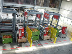 – automatic computer controlled process line with the AWETA water unloading system, which enables apple sorting according to colour, size and weight.